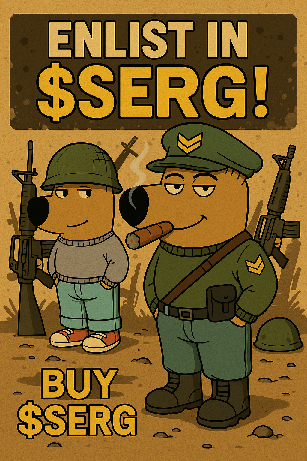 $SERG is led by Sergeant Guy — a battle-hardened mutt born from the chaos of internet warfare.